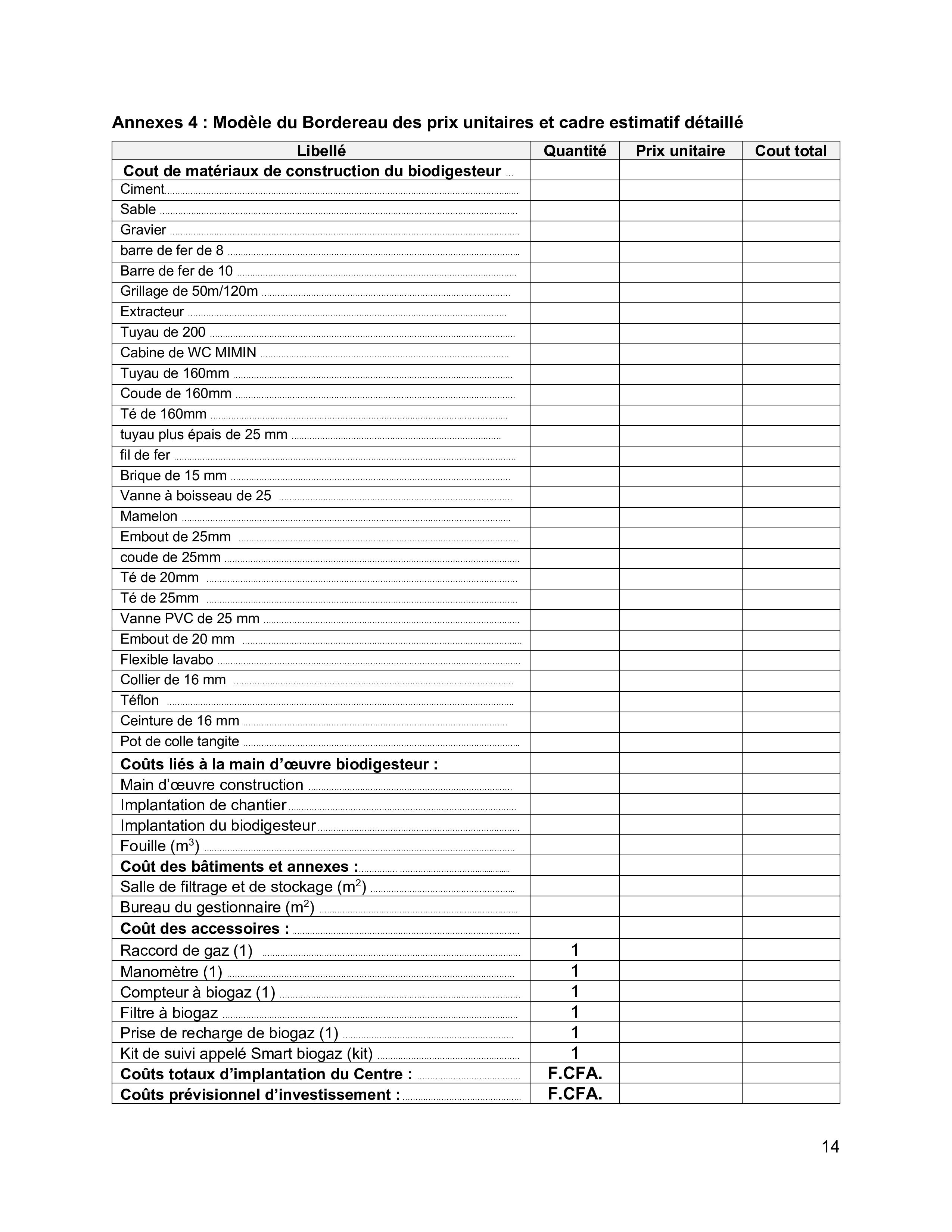 digestat dans le village de Kontoubarou, commune de Tchaourou. Le dossier complet d’appel d’offres est disponible sur : https://drive.google.com/file/d/1QDL-IiJ2XX-WkjU1j_iwGX3XFXsLsBwt/view?usp=sharing . Le DAO peut être également obtenu en envoyant une demande à l’adresse candidature-bfr@vertmondeong.com . La date limite de candidature est le 22 Décembre 2022 à 17 heures précises.