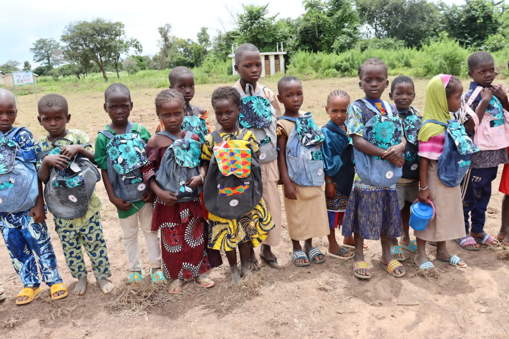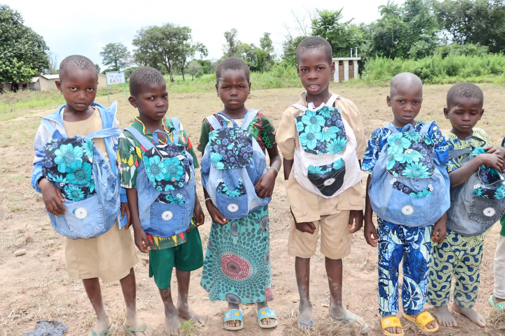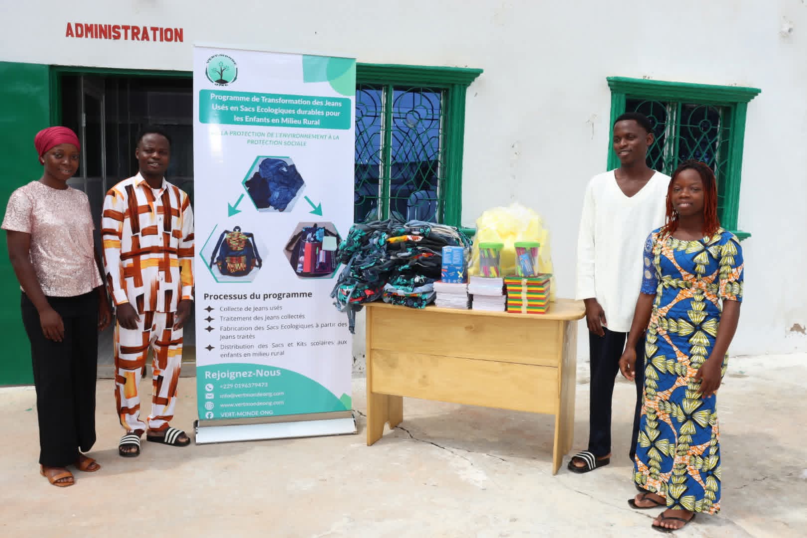 Les premières cohortes de jeunes formés, issues du quartier Okedama à Parakou, avaient mis en œuvre une activité assez particulière. Ils ont contribué à la transformation des jeans usés en sacs d’écoliers écologiques. Au début de cette année scolaire 2025-2026, ces sacs écologiques, en plus des kits scolaires (cahiers, ardoises, stylos, craies, chiffons) ont été distribués aux 50 enfants commençant leur première année du primaire (CI) à l’Ecole Primaire Publique de Karo dans le village Karo au Nord Bénin. Ces sacs et kits scolaires permettront à ces enfants de bien commencer leur année scolaire. Par cette donation, les parents aux revenus modestes pourront faire des économies sur les dépenses scolaires et éventuellement investir ces économies dans leurs activités génératrices de revenu. A travers cette action, le programme de formation des jeunes sur le volontariat est passé de la protection de l’environnement (recyclage des jeans) à la protection sociale (distribution de kits scolaires). Comme le confirment de nombreuses études scientifiques, la protection sociale est indispensable à toute nation, surtout celles à faible revenu comme le Bénin.
