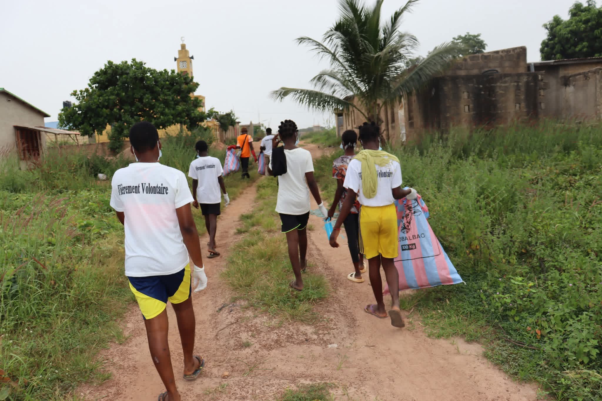 Partis à 7h du matin du siège de VERT-MONDE ONG, les participants ont sillonné les rues du quartier Okedama pour collecter les sachets plastiques jonchant le sol.