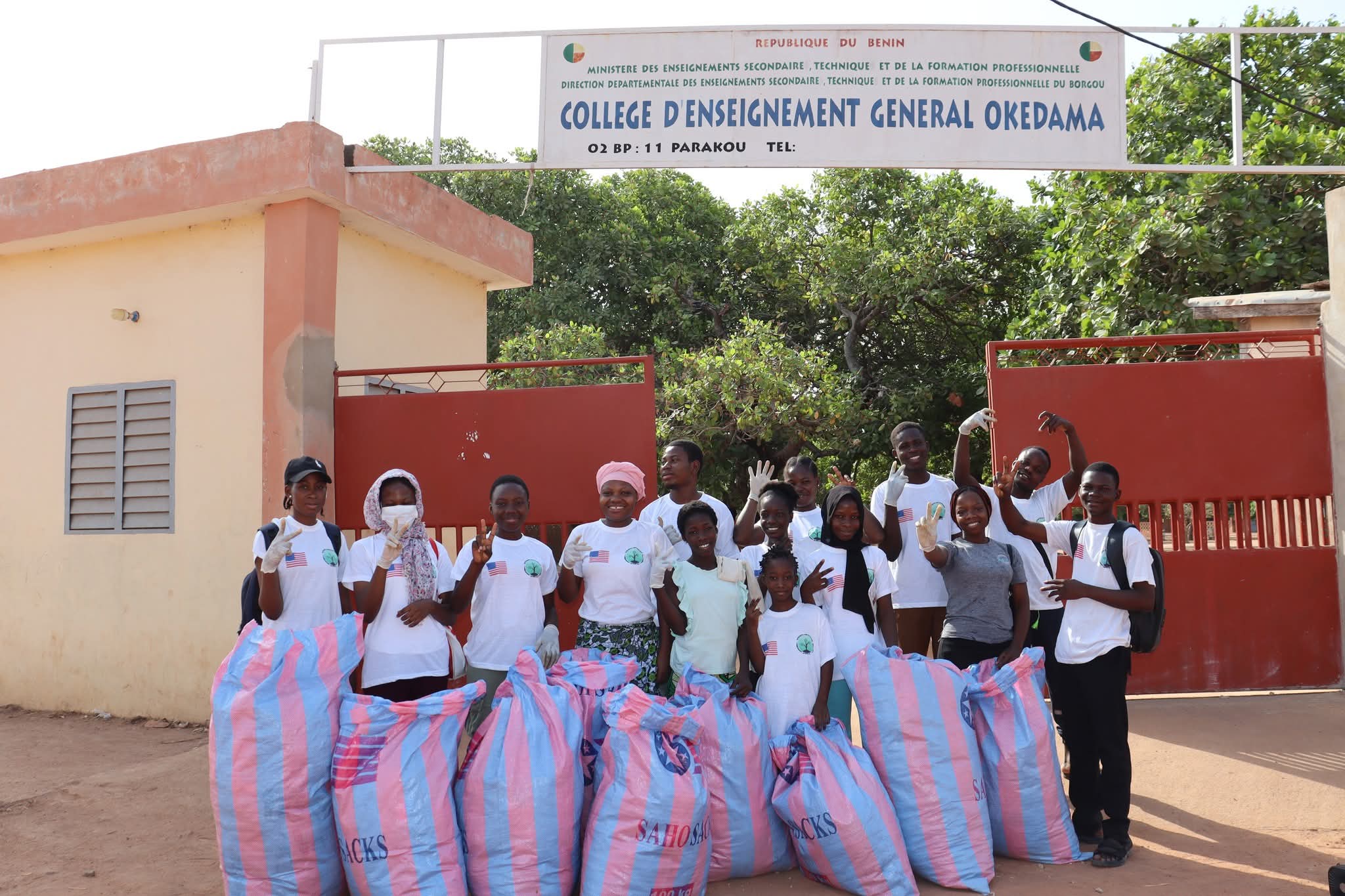 Les jeunes ayant suivi la formation sur le volontariat sont passés de l’apprentissage à l’engagement concret en organisant et en mettant en œuvre leur toute première activité de volontariat. Le samedi dernier, ils se sont mobilisés pour collecter les déchets plastiques qui polluaient l’environnement du Collège d’Enseignement Général d’Okedama (CEG Okedama).